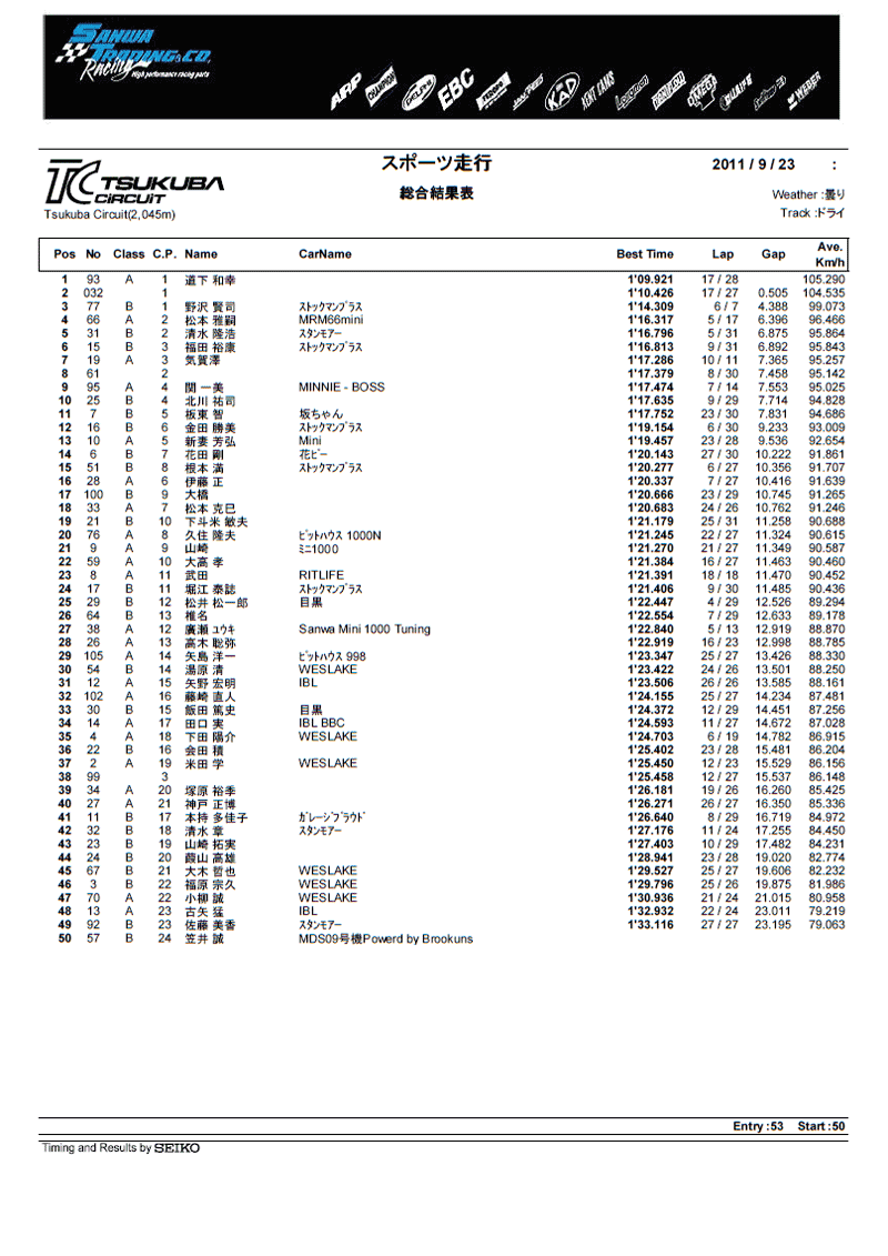 9 月 23 日(祝金)筑波サーキットで SUPER BATTLE of MINI 第 3 戦、SEVEN SUPER LAP BATTLE / GINETTA